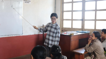 8月18日,福建泉州蟳埔村,一名體驗“簪花圍”的小游客在拍照留念。