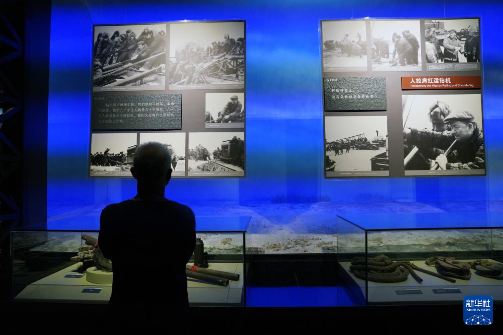 參觀者在位于大慶市的鐵人王進喜紀念館參觀(8月6日攝)。