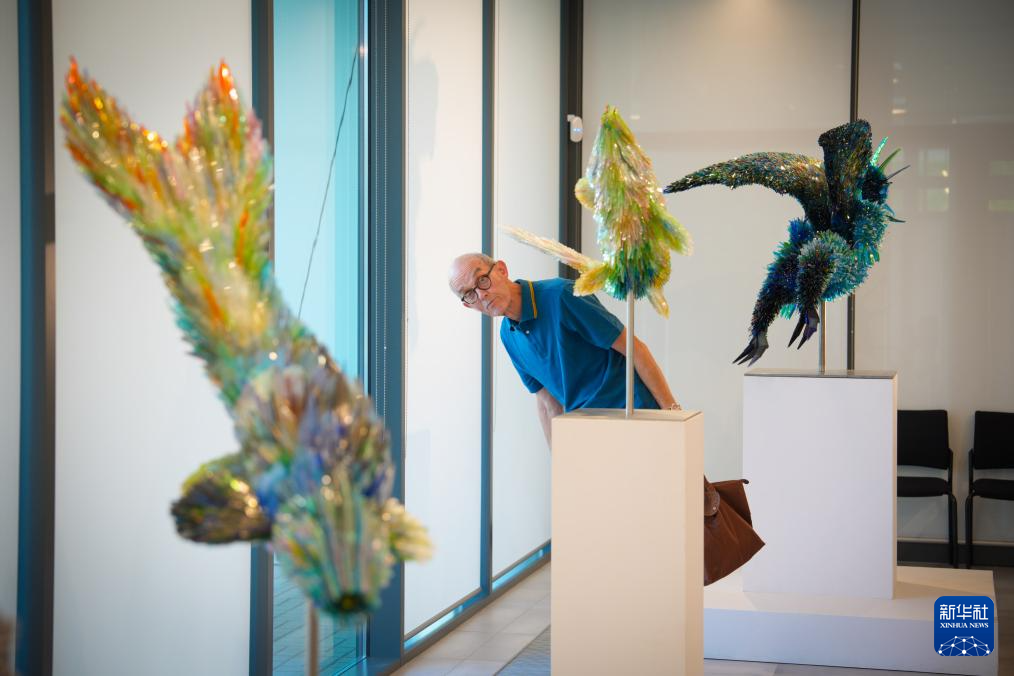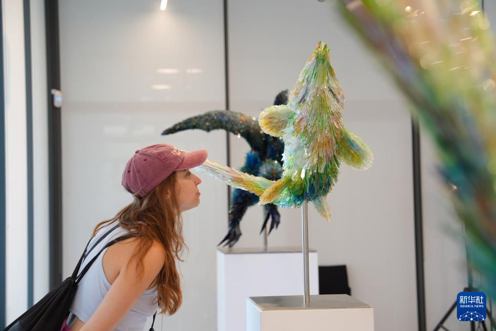 8月29日,觀眾在波蘭首都華沙的烏爾申努夫文化中心欣賞玻璃雕塑。