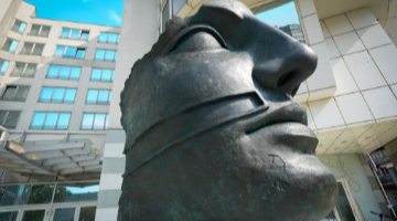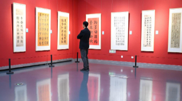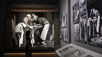 9月27日,觀眾在中國美術館參觀雕塑作品《苦旅共甘泉》。