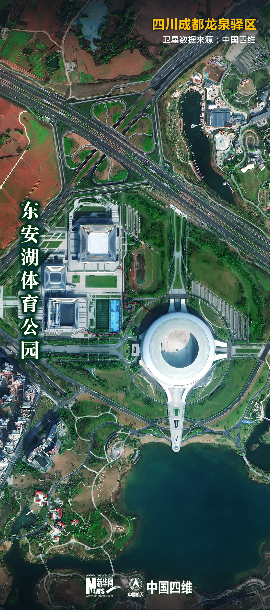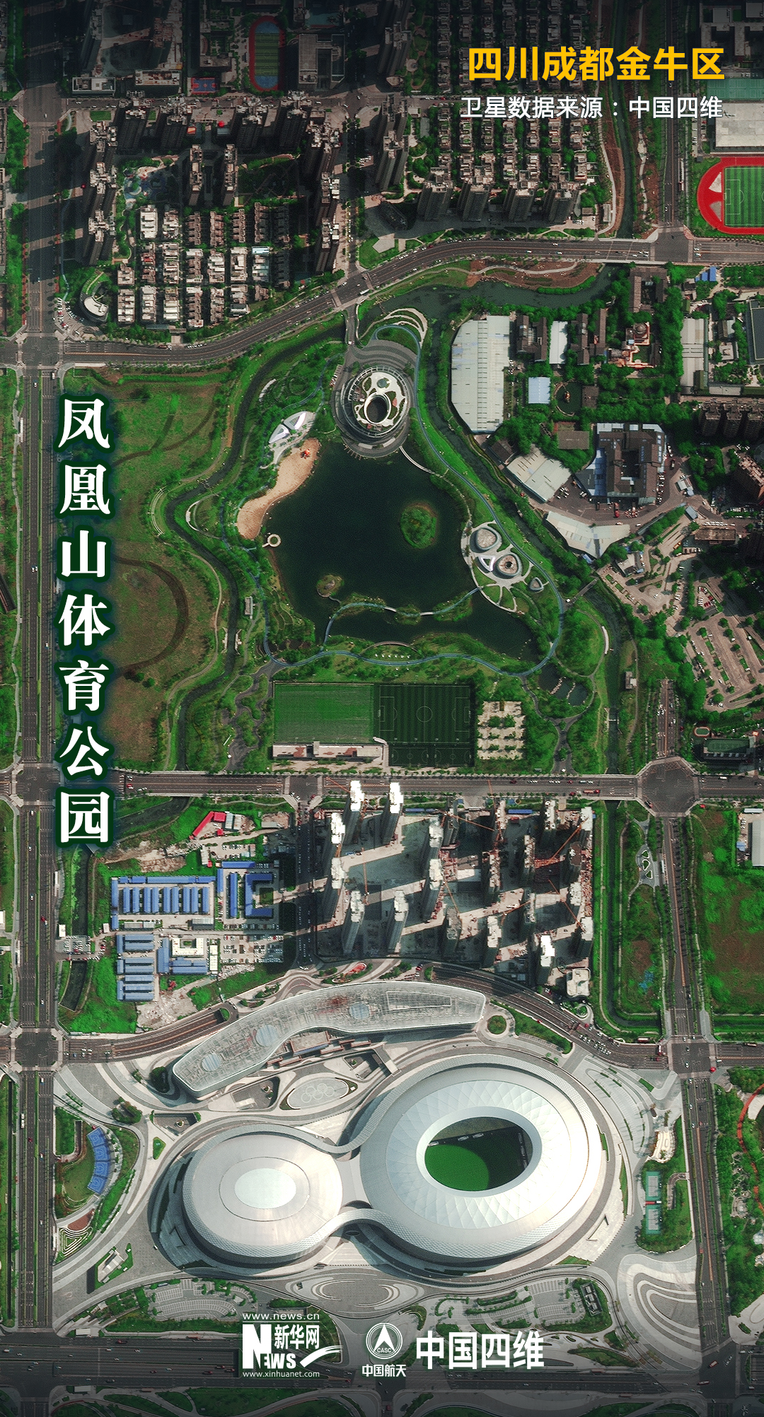 這是2021年8月23日拍攝的鳳凰山體育公園專業足球場和綜合體育館(右)。新華社發(成都大運會執委會供圖)