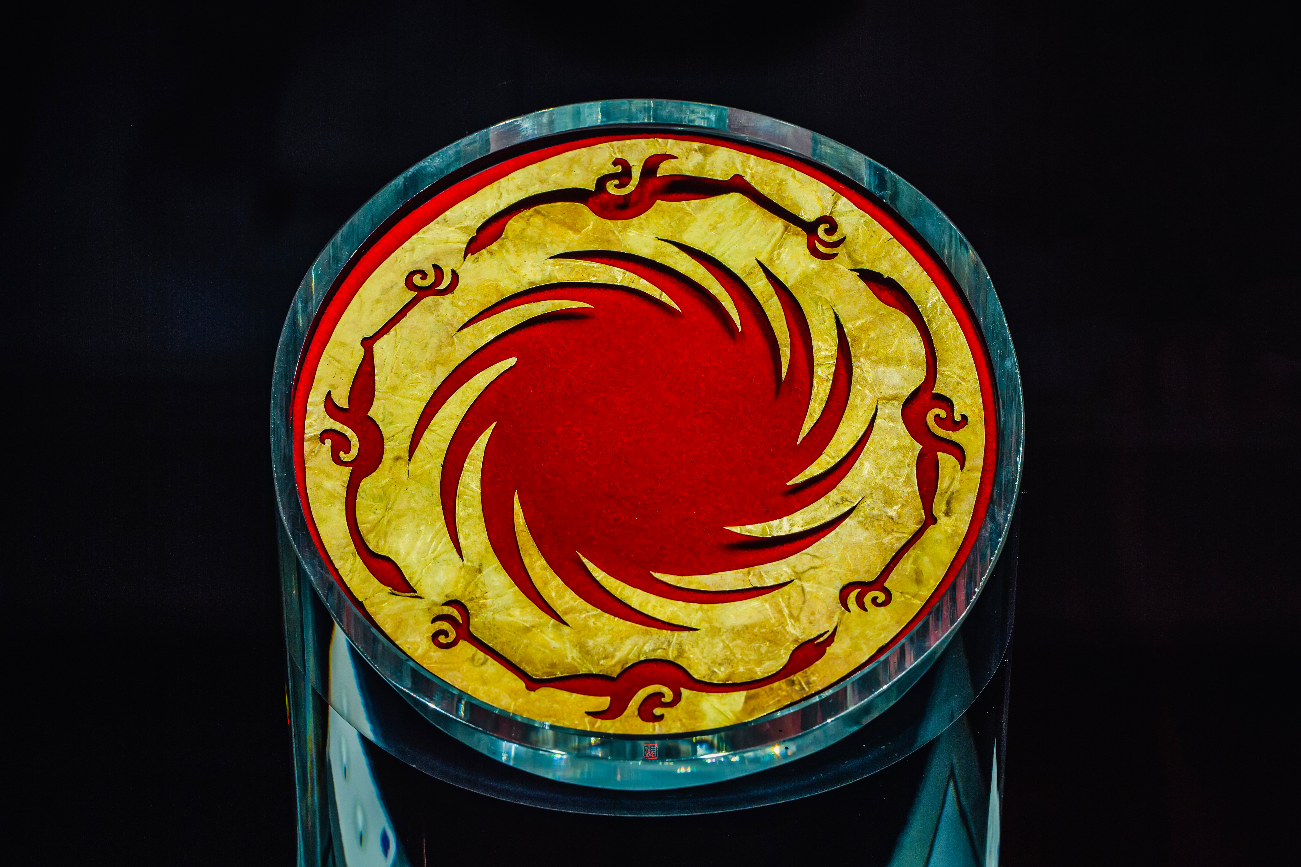 這是成都金沙遺址出土的商周古蜀太陽神鳥金飾(2019年11月4日攝)。新華社發(張艷 攝)