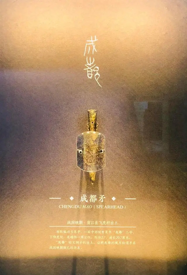 矛身的中間用篆書刻著“成都”二字