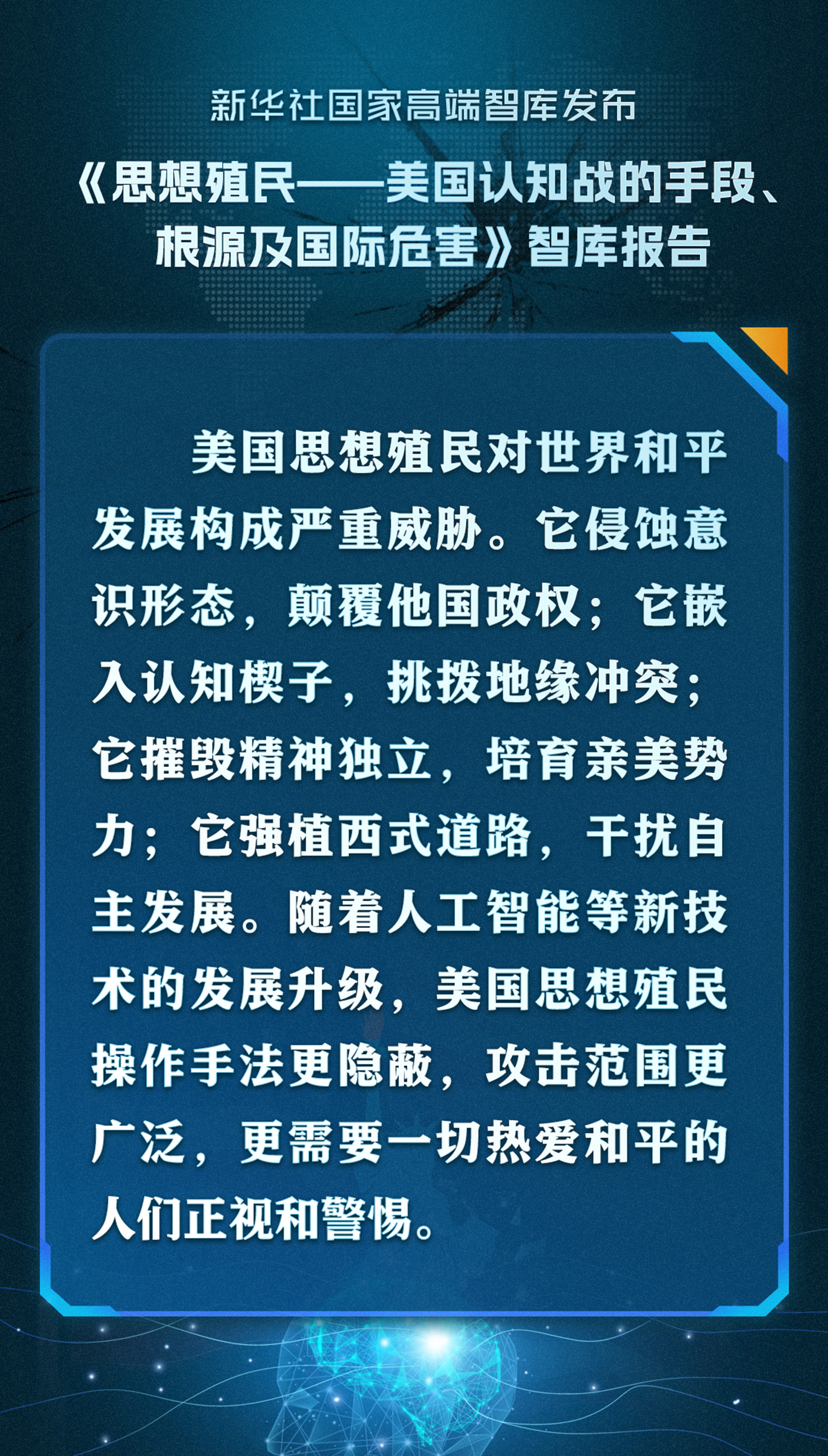 9月7日,新華社國家高端智庫在云南昆明舉行的2025全球南方媒體智庫高端論壇上,發布智庫外宣報告《思想殖民——美國認知戰的手段、根源及國際危害》。