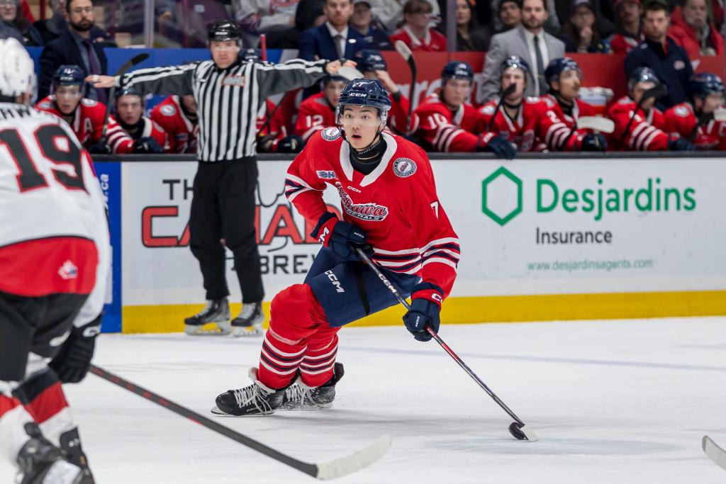 17歲的王浩西身高已經達到1米98,出色的身體素質讓他在冰上對抗時更具優勢。高大的身形與出色的滑行能力相結合,使他在眾多青年后衛中脫穎而出,引起不少球探和媒體的關注。在NHL官網發布的2025年NHL選秀排名前十后衛的介紹中,王浩西位列第十。