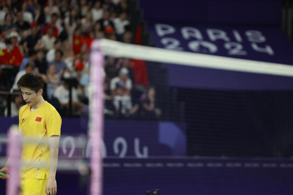 2024年8月2日,石宇奇在巴黎奧運會羽毛球男子單打四分之一決賽中。新華社記者 任正來 攝
