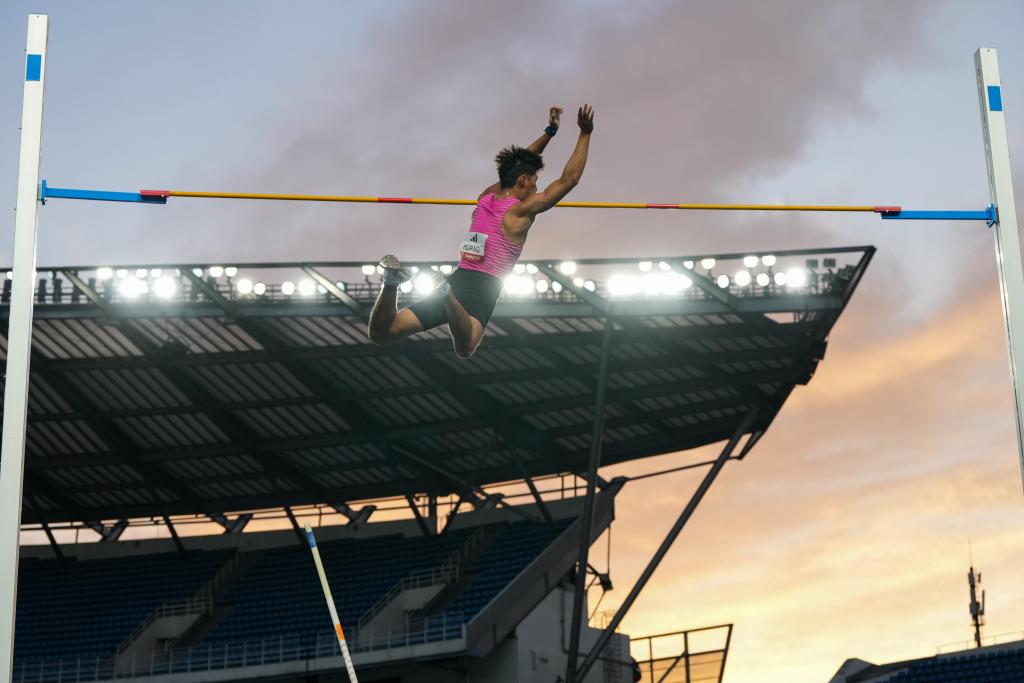 9月7日,2025年世界田聯洲際巡回賽(金標)北京站男子撐桿跳高比賽,中國選手黃博凱在比賽中。最終,他和菲律賓選手歐內斯特·約翰·奧貝納獲得并列季軍。新華社記者 鞠煥宗 攝