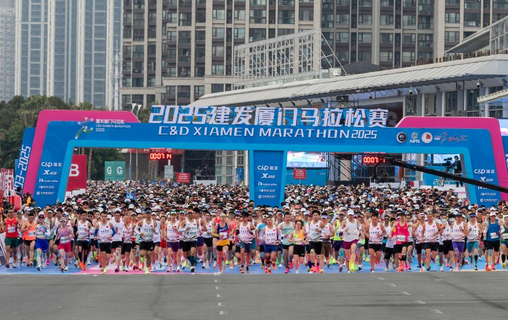 1月5日,選手從起點出發。當日,2025廈門馬拉松賽在廈門鳴槍開跑。本次比賽吸引了來自40多個國家和地區的約35000名選手參賽。新華社記者 魏培全 攝
