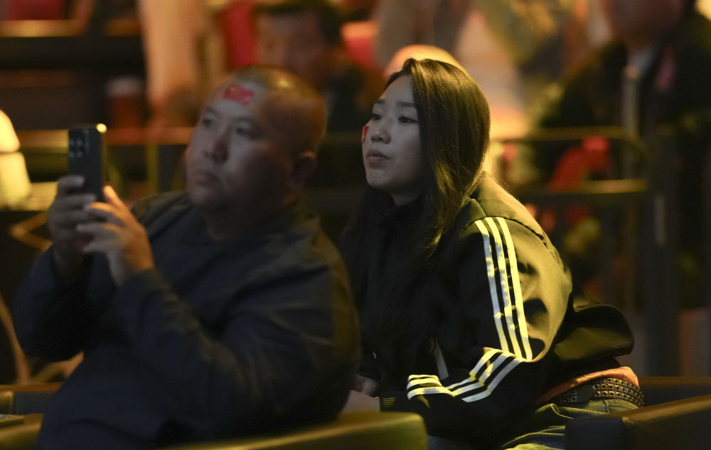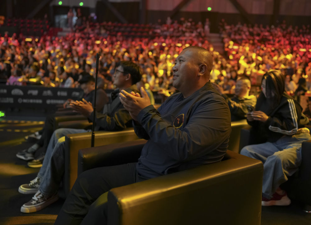 新華社北京10月1日電(記者岳冉冉、蘇斌、胡佳麗)國慶節當天,北京首鋼園區八極場座無虛席。在紅色燈光映照下,觀眾們揮舞國旗,同唱《我和我的祖國》。在靠近比賽球臺的區域,有8位觀眾被大屏幕聚焦,他們是組委會邀請的特殊客人——外賣騎手。