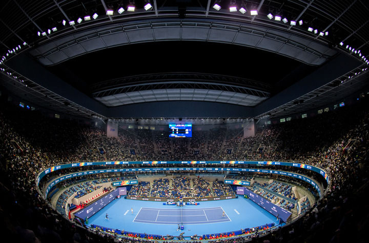 10月1日,中國網球公開賽期間,球迷在國家網球中心內的大屏前觀看比賽。新華社記者 杜昕怡 攝