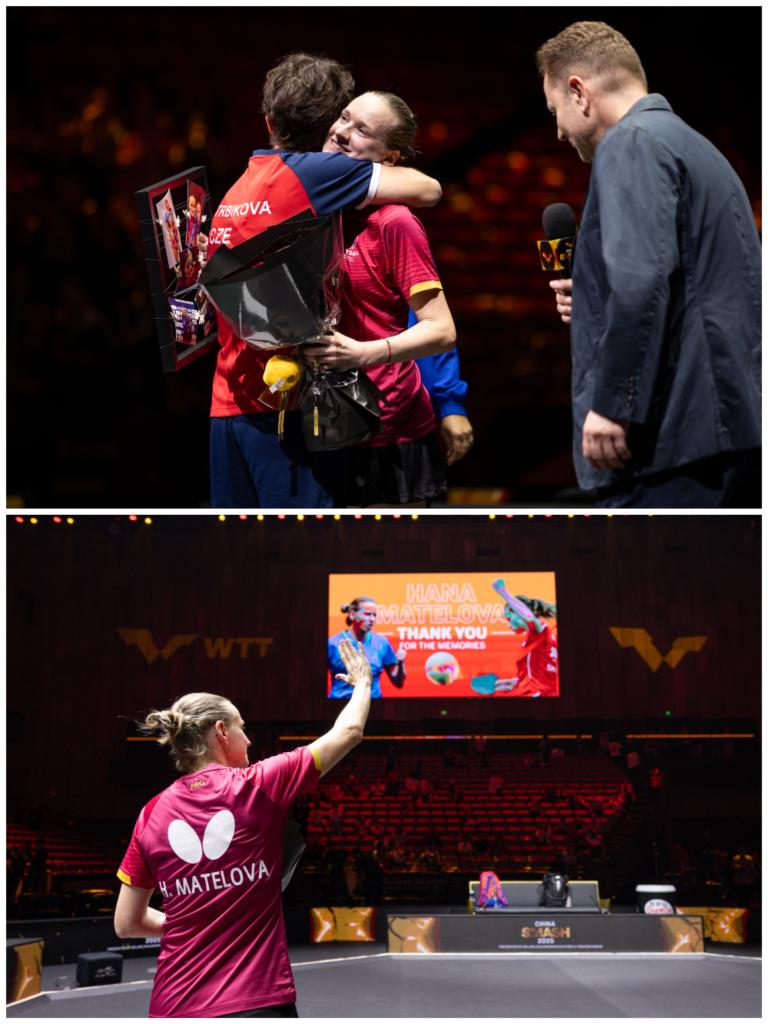 來北京前,馬特洛娃曾透露會在本次中國大滿貫賽結束后退役。本以為這會是一場無人問津的告別,沒想到WTT為她精心準備了儀式,現場不僅有鮮花、掌聲和訂制禮物,還有從遠道而來,見證她退役的雙打搭檔巴拉佐娃。