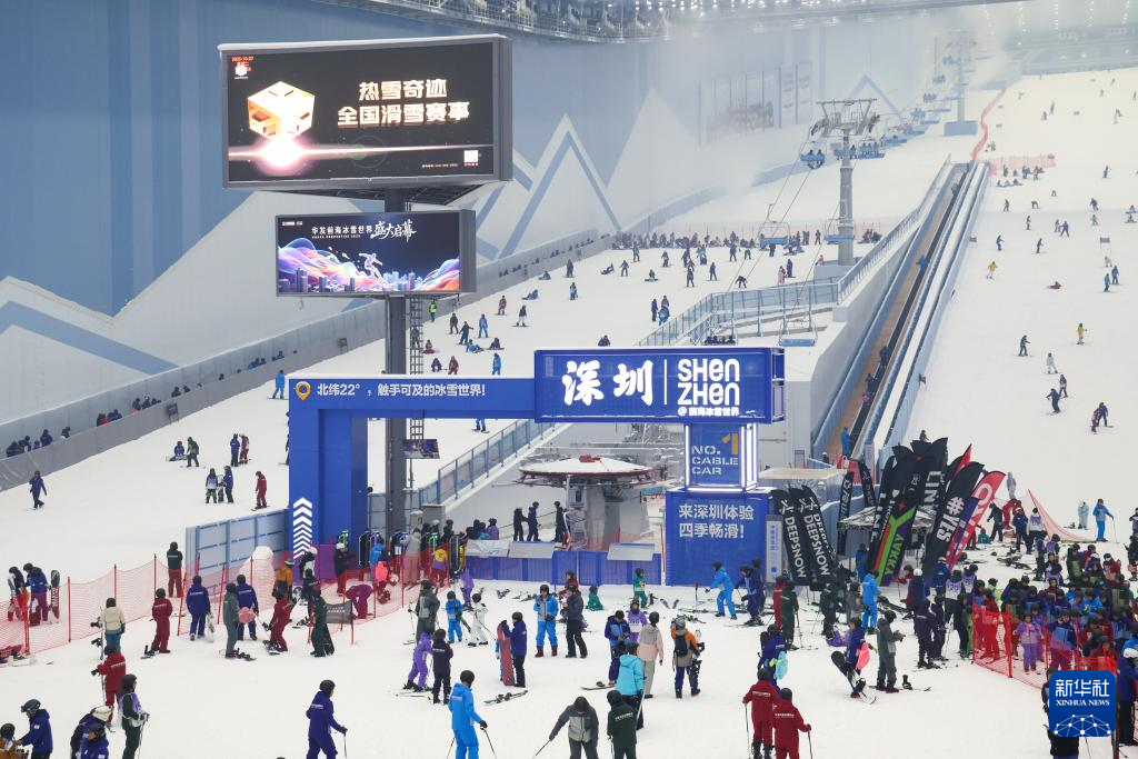 深圳·前海冰雪世界總建筑面積約10萬平方米,配備5條專業雪道,最大垂直落差達83米,單條雪道最長距離463米,涵蓋多種雪道類型,既滿足國際雪聯賽事標準,也具備訓練教學和大眾娛樂功能。在國慶中秋長假期間預計接待游客約20萬人次,粵港澳大灣區“一小時冰雪生活圈”正加速形成。