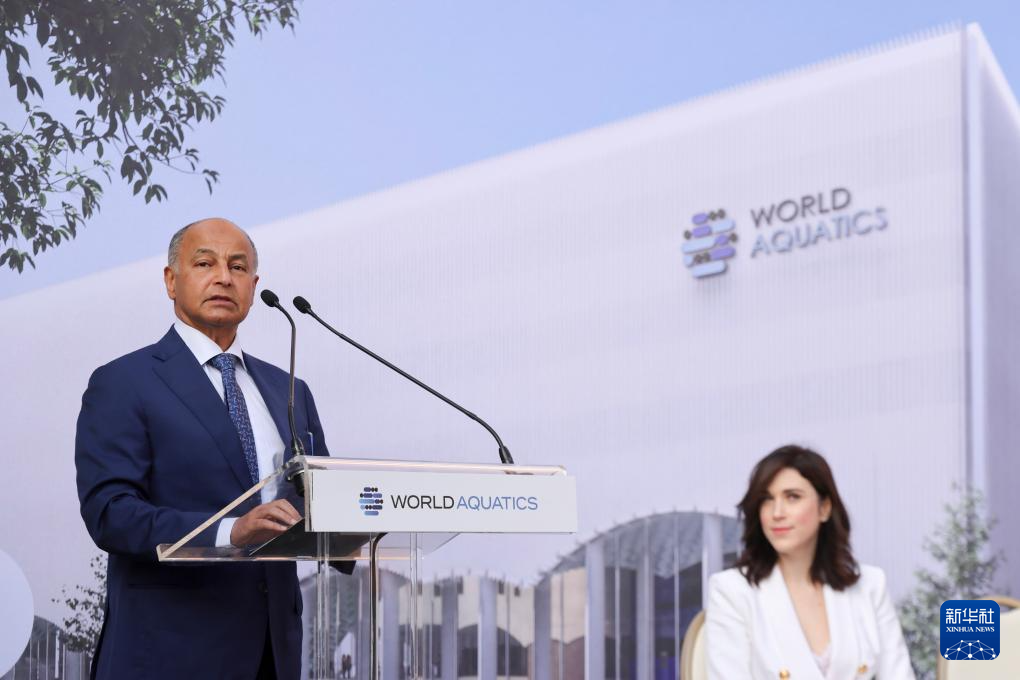 10月7日,世界泳聯主席侯賽因·阿爾-穆薩拉姆在奠基儀式上致辭。