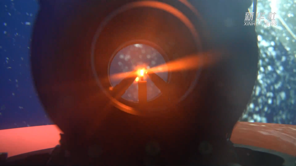 采火裝置在海底冷泉噴口采集可燃冰(9月18日攝)。新華社發(廣州海洋地質調查局供圖)