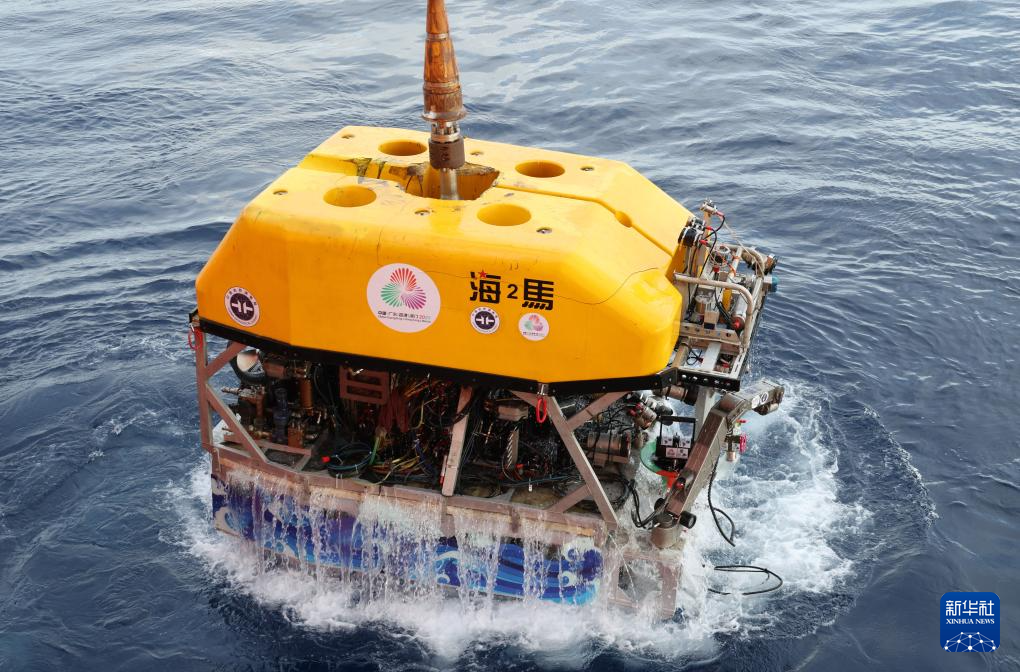“海洋地質二號”科考船搭載“海馬”號深海遙控潛水器在南海北部進行“源火”采集(9月18日攝)。