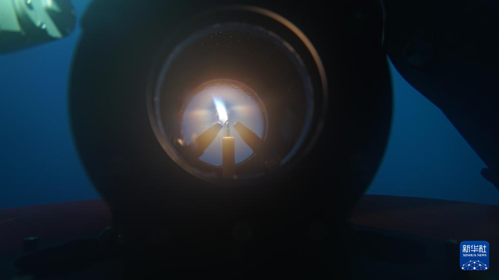 采火裝置在海底成功引燃“源火”(9月18日攝)。