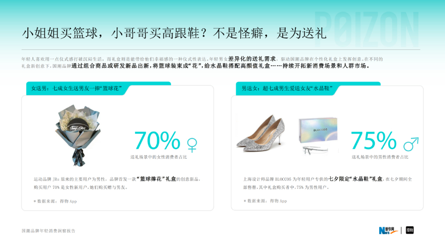 新國潮品牌通過鉆研年輕人的生活需求細節,推動多樣的創意新品研發與靈活供給。無論是被年輕人當潮流配飾的“耳機”,還是僅憑一款單品躍居行業黑馬的“剃須刀”;70%女生買的“籃球捧花”,還是75%男生買的“水晶鞋”;把平平無奇的“磁鐵”設計成13萬小情侶秀恩愛的“手鏈”,還是上架即必買的“頸椎按摩器”……《報告》通過一系列品牌案例,展示了國潮品牌被年輕人生活細節點亮靈感后的上新“群像”。更有一些從外觀、設計到核心技術都自主研發的“中國原創”品牌,在問鼎國際權威大獎同時,在得物App頻登新品熱榜,收獲大批年輕粉絲。