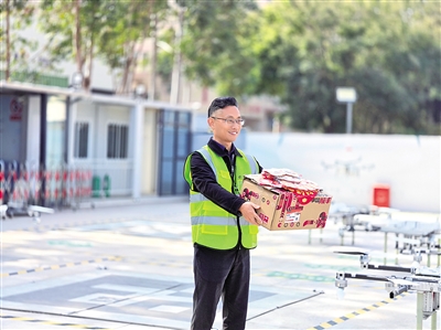 圖為深圳豐翼無人機運營中心工作人員準備配送年貨車厘子。(企業供圖)