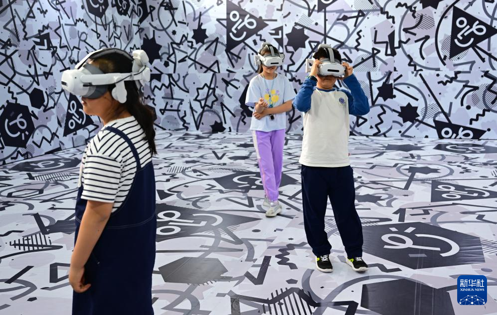 4月26日,小朋友們在第三屆中國(安徽)科技創新成果轉化交易會上體驗VR設備。