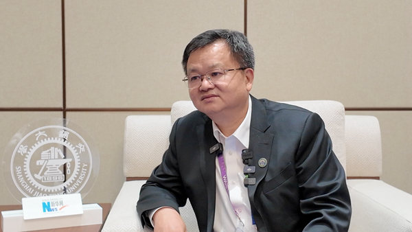 圖為中國科學院院士、武漢大學校長、黨委副書記張平文接受新華網采訪。(新華網 郭郁 攝)