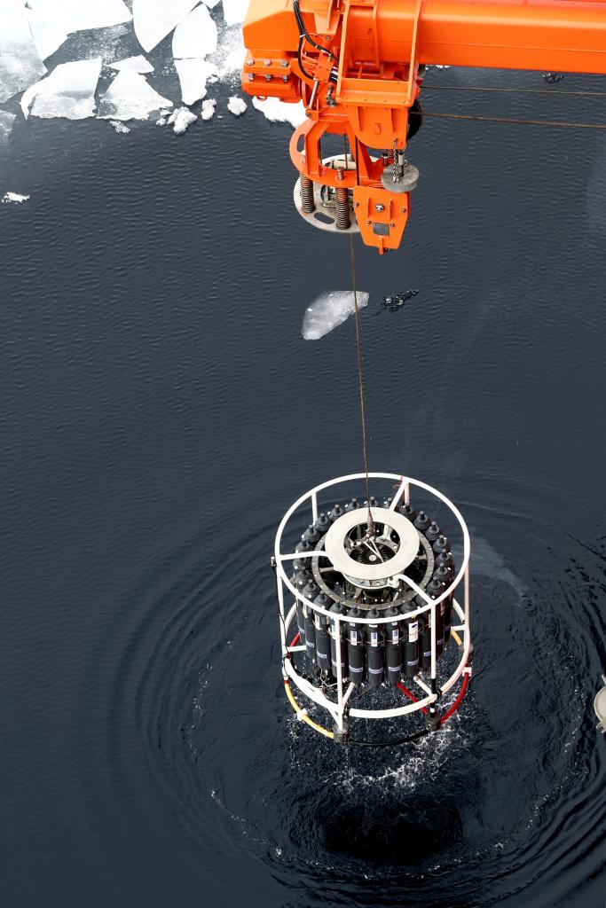 圖為科考隊員回收采取水樣的CTD。新華社記者劉詩平 攝
