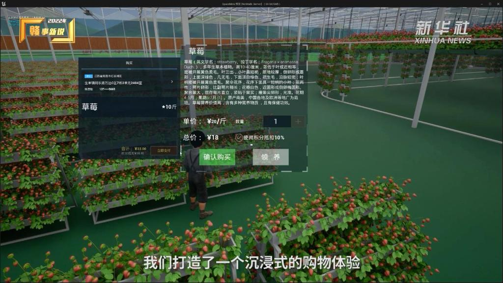 在虛擬現實的世界里既可以搞農業科研,也可以“種菜”“買菜”。在沉浸式的購物體驗中,每個人都可以選擇一套裝扮,跟數字人逛農場,點擊攝像頭就能看到生產實景,既可購買、也可領養,購買后送貨到家。