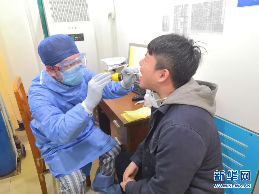 在上海中醫藥大學附屬岳陽中西醫結合醫院,謝國群醫生在發熱門診值守(2020年2月26日攝)。新華社發
