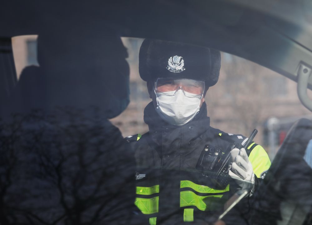 ↑1月9日,民警在檢查站核查來往車輛人員。