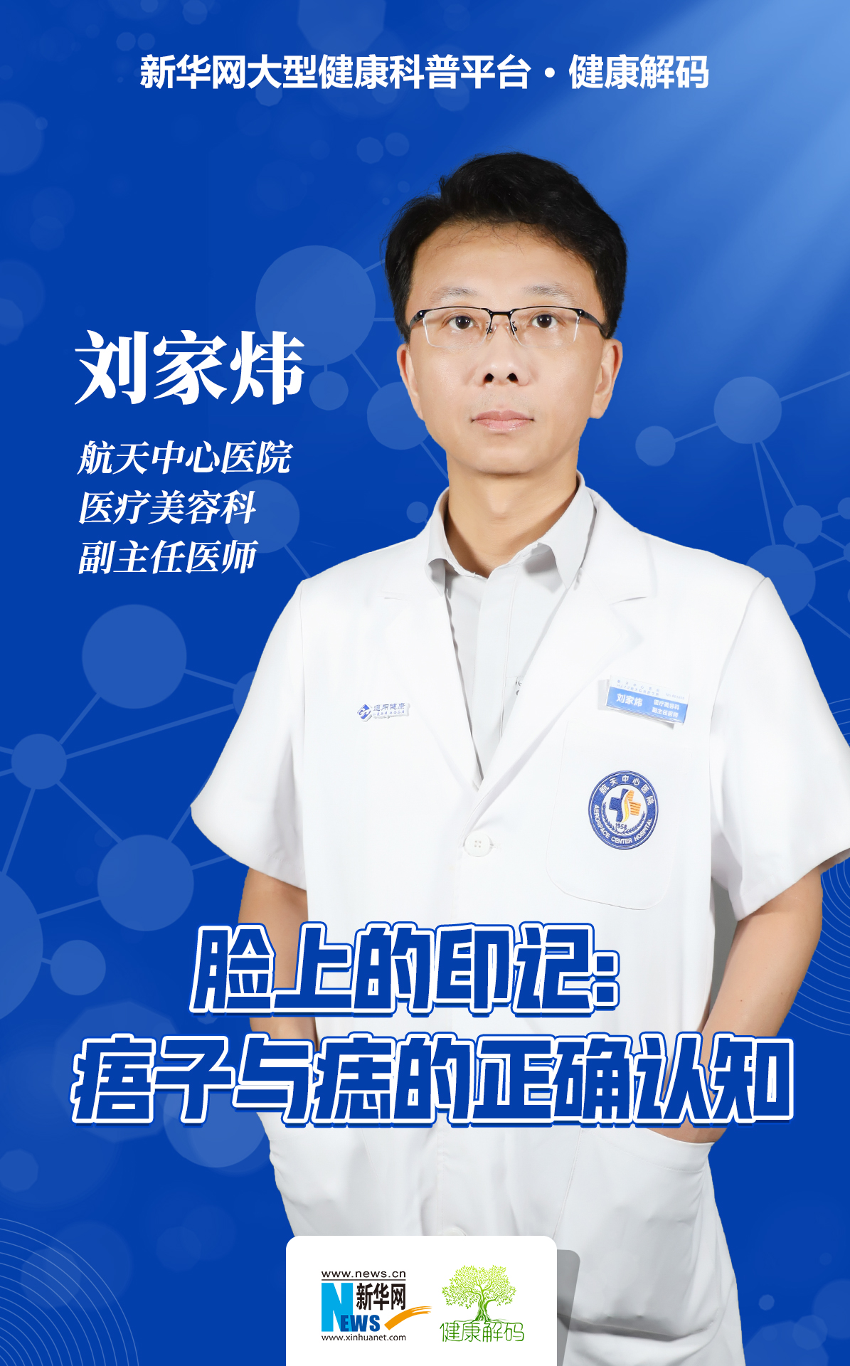 本集節目我們邀請了航天中心醫院醫療美容科副主任醫師劉家煒分享《臉上的印記:痦子與痣的正確認知》。