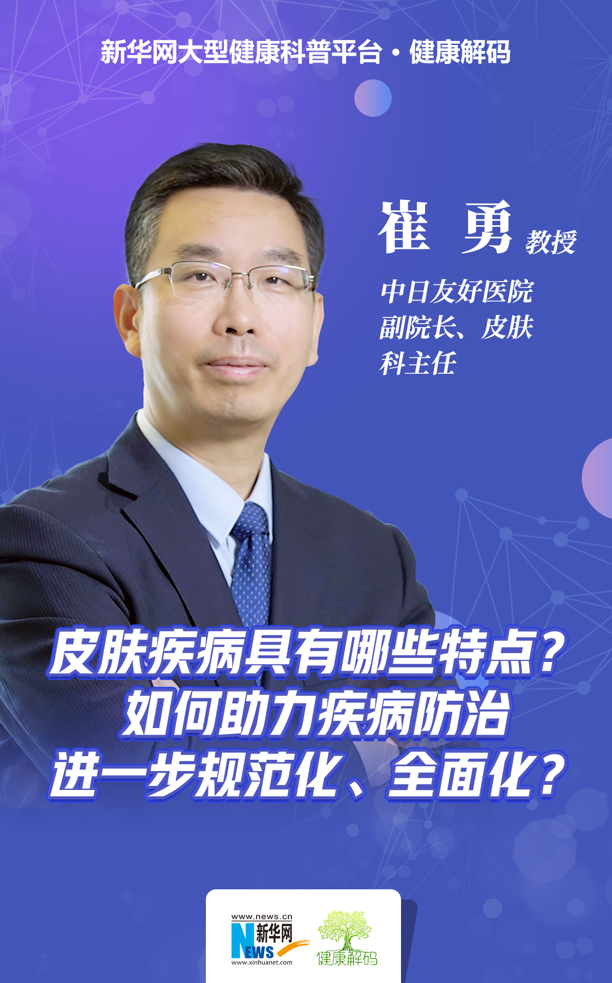 崔勇:皮膚是我們人體最外在的一個器官,它是接觸外界的,所以受到的傷害是很多的,這是第一個特點,病種很多;第二個,受皮膚病影響的人也很多,對醫院而言,皮膚科也常是門診量最大的科室之一,因此皮膚病的疾病負擔是比較重的。所以,從皮膚科的角度來講,我們確實要加大力量去提升我們對皮膚疾病管理的能力、治療的能力,我覺得這樣是有助于整體人民健康的。