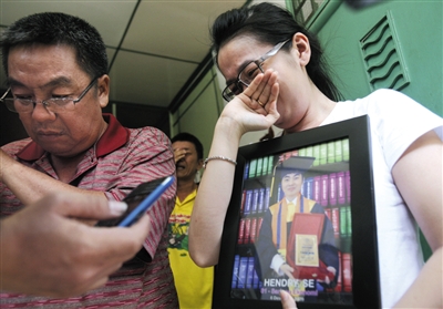 18日,一名印尼乘客(ke)的家屬在接受媒體采訪時(shi)痛哭(ku)。