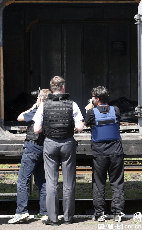 當地(di)時間2014年7月20日(ri),烏克蘭頓(dun)涅茨克Torez,馬航墜機遇難(nan)(nan)乘客(ke)遺(yi)體(ti)被裝上列車(che)冷藏(zang)車(che)廂將被運走。載(zai)有部分遺(yi)體(ti)的(de)(de)火車(che)從距(ju)空(kong)難(nan)(nan)現場不遠的(de)(de)烏克蘭托列茲市出發,前往頓(dun)涅茨克市。火車(che)離站(zhan)前,身(shen)處空(kong)難(nan)(nan)現場的(de)(de)歐洲安全與合作(zuo)組織(歐安組織)代表檢查了(le)運載(zai)遺(yi)體(ti)的(de)(de)5節冷藏(zang)車(che)廂。