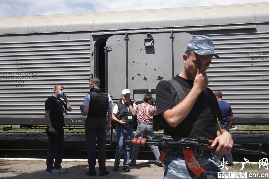 當地時間2014年7月20日(ri),烏克(ke)蘭頓涅(nie)茨(ci)克(ke)Torez,馬航墜機遇(yu)難乘客遺(yi)(yi)體被裝上列車(che)(che)冷藏車(che)(che)廂將被運走。載(zai)(zai)有部(bu)分(fen)遺(yi)(yi)體的火車(che)(che)從距空難現(xian)場不遠(yuan)的烏克(ke)蘭托(tuo)列茲市(shi)出發,前(qian)往頓涅(nie)茨(ci)克(ke)市(shi)。火車(che)(che)離站前(qian),身(shen)處(chu)空難現(xian)場的歐洲安全與合作組織(zhi)(歐安組織(zhi))代表檢查了運載(zai)(zai)遺(yi)(yi)體的5節冷藏車(che)(che)廂。