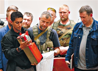 22日,烏克蘭頓涅茨克,烏克蘭民間武裝將MH17的兩個黑匣子移交給馬方調查組。馬方調查人員稱,黑匣子“只有輕微損傷,基本完整無缺”。