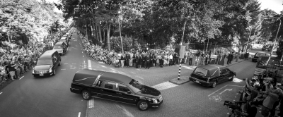 7月23日,護送馬航MH17航班遇難者遺體的汽車經過大街,荷蘭民眾街頭目送并寄托哀思。圖/CFP