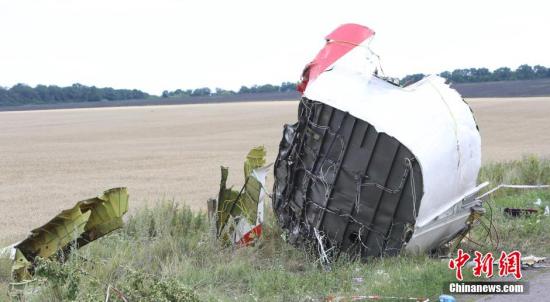 資料圖:MH17的主要殘骸部分。該部分殘骸所在地此前曾被民間武裝人員封鎖,7月21日當地民間武裝人員開放了該部分現場。(中新社發 王修君攝)