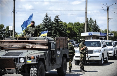 7月31日,烏克(ke)蘭政府軍車(che)護送(song)專家組車(che)隊(dui)進入墜機現(xian)場。
