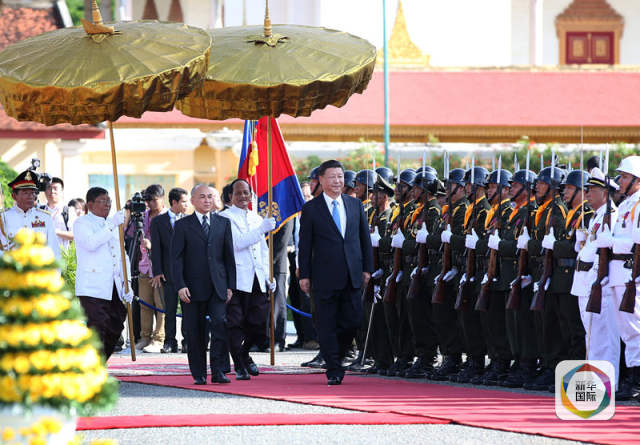 抵達金邊之(zhi)(zhi)前,習主席在當(dang)地主流(liu)報紙《柬(jian)埔寨之(zhi)(zhi)光》發表署名(ming)文章,用“肝膽相照的(de)(de)好朋友(you)”“情(qing)同(tong)手足的(de)(de)好鄰居”形容中(zhong)柬(jian)友(you)誼。如此(ci)情(qing)感外(wai)溢的(de)(de)表達,在中(zhong)國(guo)(guo)外(wai)交(jiao)用語中(zhong)并(bing)不多見(jian)。?中(zhong)柬(jian)之(zhi)(zhi)間(jian)這份(fen)濃濃的(de)(de)特殊情(qing)誼自習主席甫抵機場便撲面而來。24名(ming)柬(jian)埔寨禮兵(bing)分列紅毯(tan)兩側,白色頭盔(kui)、藍色制服,分外(wai)莊(zhuang)嚴。對外(wai)國(guo)(guo)領導人的(de)(de)國(guo)(guo)事(shi)訪問,柬(jian)方一(yi)般以(yi)12名(ming)禮兵(bing)相迎,這種“加倍”的(de)(de)禮遇(yu),背(bei)后是(shi)中(zhong)柬(jian)關系的(de)(de)深情(qing)厚(hou)意。