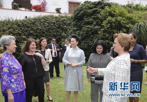 彭(peng)麗(li)媛抵達(da)時,自發前來的(de)當地華僑華人(ren)揮(hui)舞(wu)國(guo)旗熱烈歡迎,彭(peng)麗(li)媛微(wei)笑著走(zou)過去同他(ta)們握手。蘭格在展廳外迎接彭(peng)麗(li)媛,身著秘(mi)魯(lu)傳統服飾(shi)的(de)管弦(xian)樂隊奏(zou)響歡快的(de)迎賓樂曲(qu)。彭(peng)麗(li)媛同其他(ta)經濟(ji)體領導人(ren)配偶親切寒暄,并參觀(guan)了博物(wu)館內的(de)文化(hua)長廊以及有關(guan)展廳。彭(peng)麗(li)媛不時駐(zhu)足詳細聽取講解,詢問展品年(nian)代和(he)制作工(gong)藝,并介(jie)紹了中(zhong)國(guo)陶器發展史和(he)中(zhong)國(guo)織(zhi)布技術。