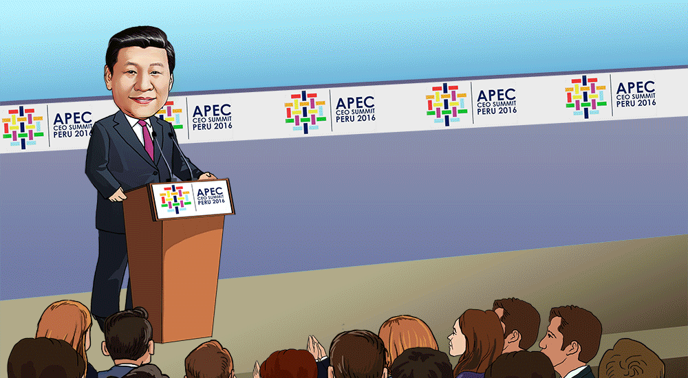 國(guo)家主(zhu)席(xi)(xi)習近平(ping)19日(ri)在秘魯利馬(ma)出(chu)席(xi)(xi)亞太經合(he)組(zu)織(APEC)工商領導(dao)人峰會(hui)并發表題為(wei)《深化伙(huo)伴關(guan)系,增強(qiang)發展動力》的(de)主(zhu)旨(zhi)演講,向世(shi)界闡述(shu)“中國(guo)主(zhu)張”,傳遞“中國(guo)信心”,受(shou)到(dao)與會(hui)代表高度稱贊,引發國(guo)際(ji)輿(yu)論熱烈反響。