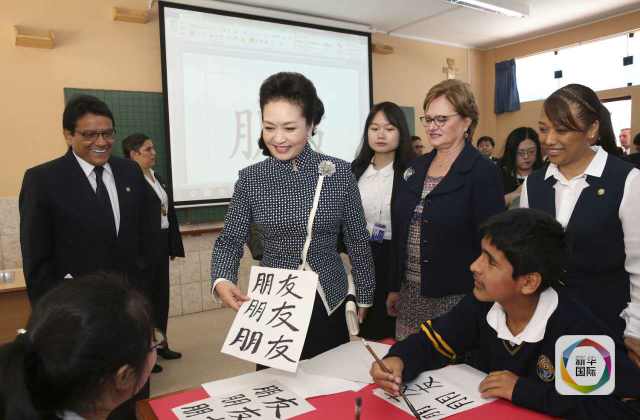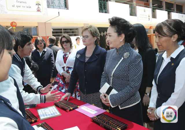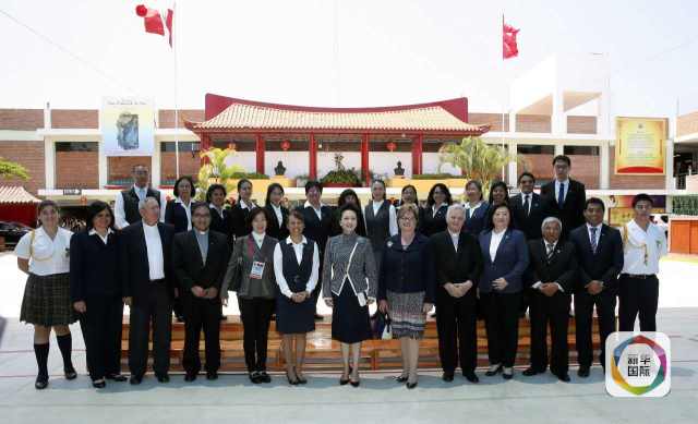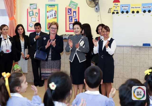 ??? 彭麗媛抵(di)達時,秘魯總統夫人蘭(lan)格(ge)和學校校長在下車(che)處(chu)迎(ying)接,校長為彭麗媛獻(xian)上鮮花。若望二十三世秘中學校創辦于1962年,是(shi)從幼兒園(yuan)到中學教育的全日制(zhi)學校,也是(shi)秘魯乃至(zhi)南美洲(zhou)最具影響(xiang)的華文(wen)學校之(zhi)一。