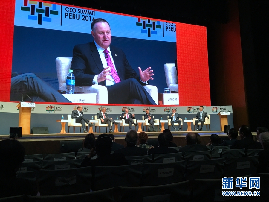 當地(di)時間11月(yue)19日,APEC工商領導人峰會舉行主(zhu)題為(wei)“重新(xin)設計貿易”的現場討論會。圖為(wei)新(xin)西蘭(lan)總(zong)理(li)約(yue)翰·基在討論會上發言。