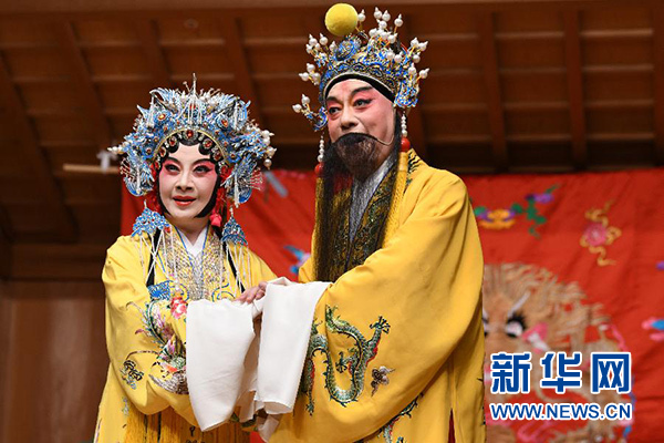 12月20日,在日本東京國立能樂堂,中國著名昆曲表演藝術家蔡正仁(右)和張靜嫻表演昆曲《長生殿》。新華社記者 姜俏梅 攝