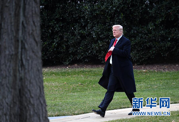 12月22日,在美國華盛頓白宮,美國總統特朗普簽署減稅法案后準備乘直升機離開。 新華社記者殷博古攝