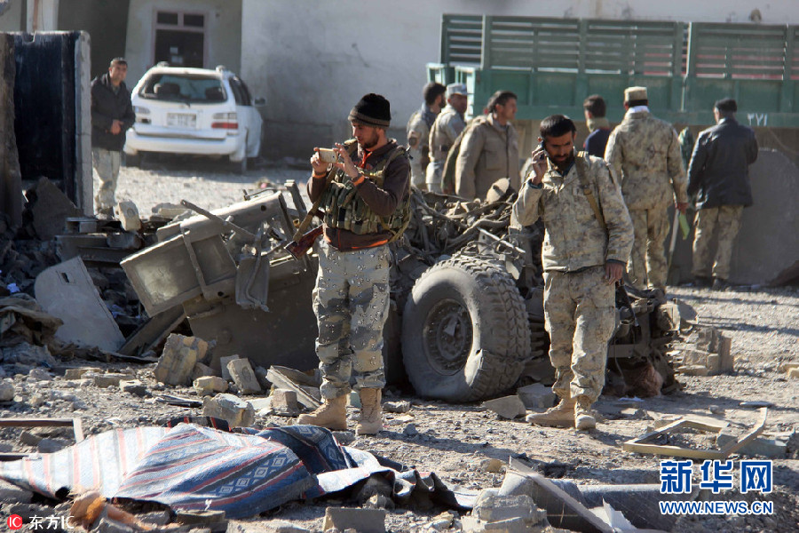 當地(di)時間22日,阿(a)富汗坎大(da)哈,當地(di)一處(chu)警察總(zong)部遭遇自殺式汽車炸彈襲擊,造成至少(shao)6名警察死(si)亡,4人受傷。圖(tu)為(wei)阿(a)富汗安全官員檢查現場。(圖(tu)片來源:東方IC)