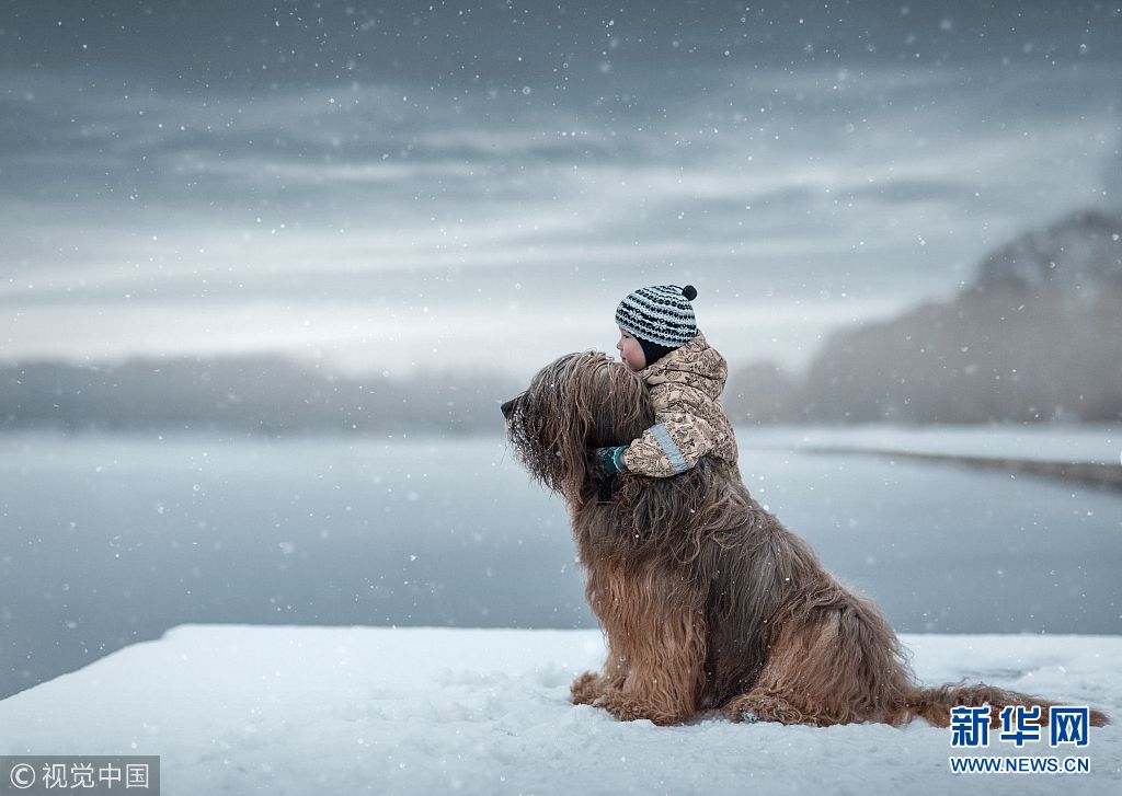 4歲(sui)6個月的(de)Gregory抱著伯瑞犬Krispy,它有(you)40公斤重(zhong)68厘(li)米高(gao)。(圖(tu)片來源:視覺中(zhong)國)