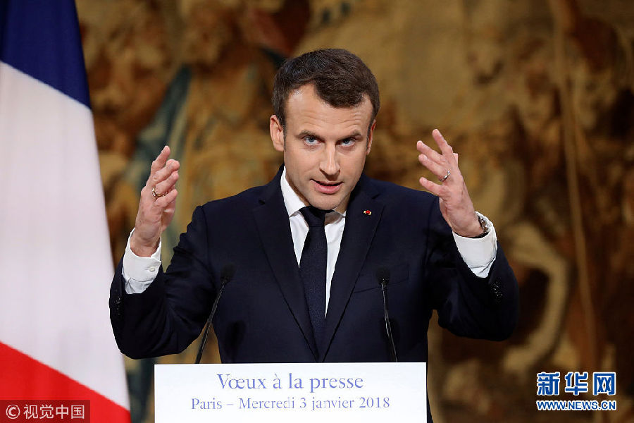 1月3日,法國巴黎,法國總統馬克龍在(zai)愛麗舍宮向記者團送上新年祝福。(圖片來源:視覺(jue)中國)