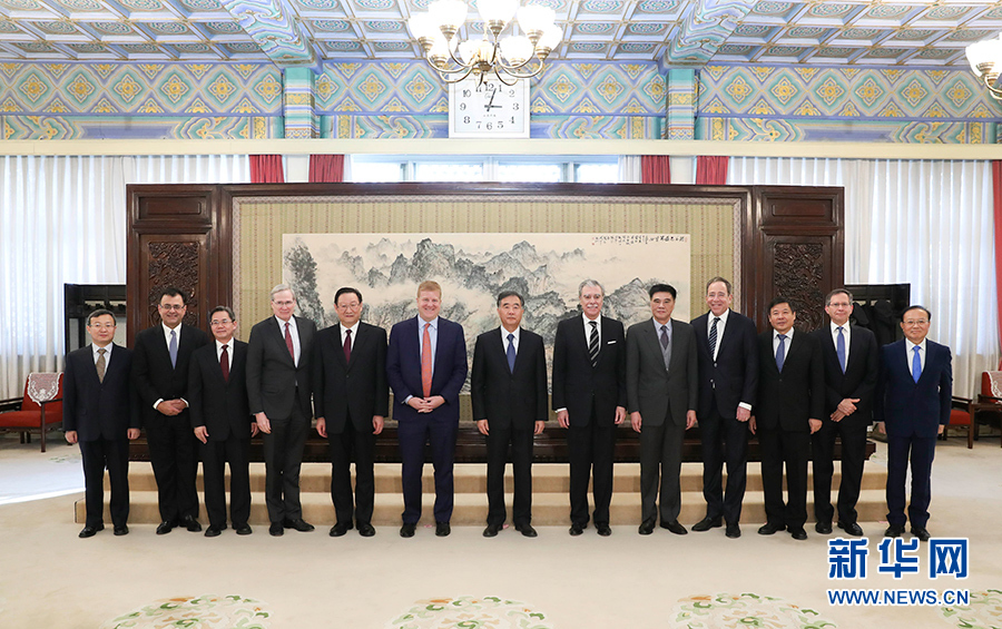 1月8日,中共中央政治局常委、國務院副總理汪洋在北京中南海紫光閣會見美國全國商會代表團。新華社記者 龐興雷 攝
