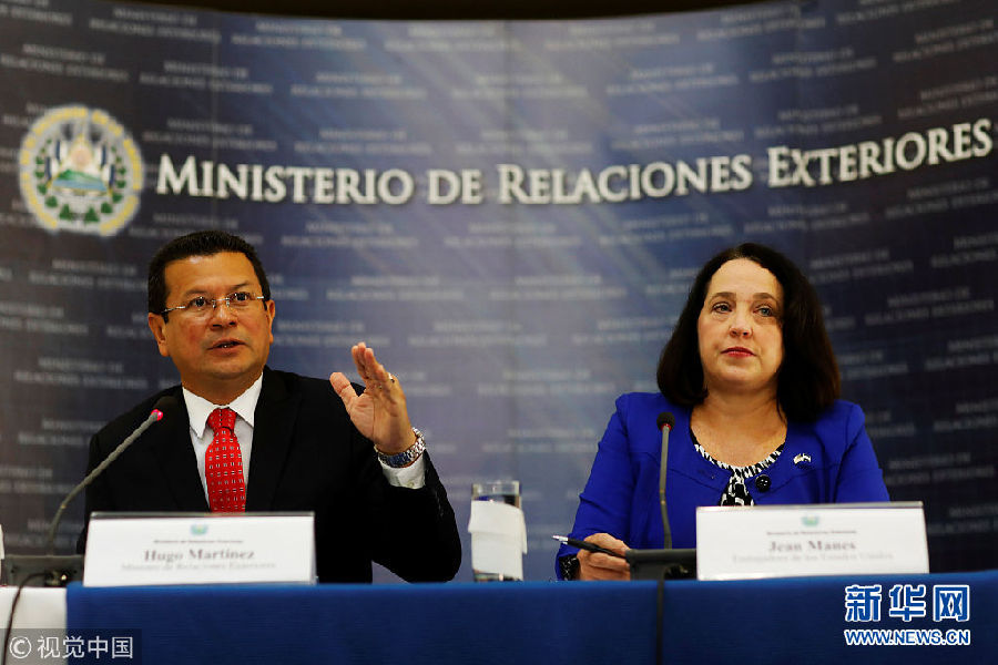 當地時間2018年1月8日,薩爾瓦多圣薩爾瓦多,美國駐薩爾瓦多大使Jean Manes(右)與薩爾瓦多外交部長雨果·馬(ma)丁內斯出席新聞發布會。(圖(tu)片(pian)來(lai)源(yuan):視(shi)覺(jue)中國)