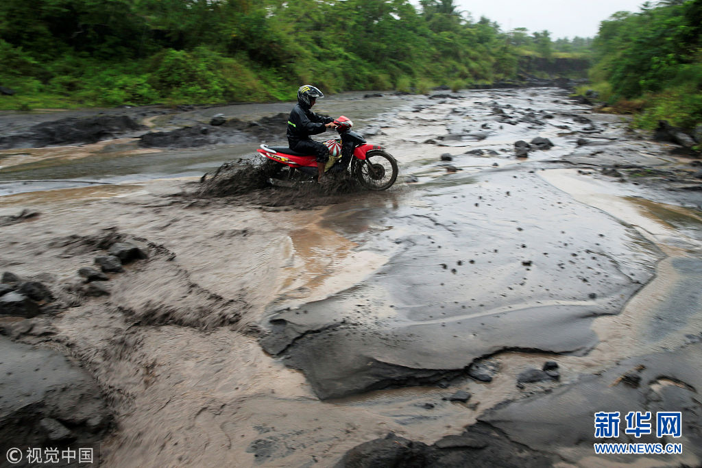 當地時(shi)間2018年1月27日(ri),菲(fei)律(lv)賓(bin)阿爾拜(bai)省,民(min)眾穿過混合著火(huo)山灰的泥漿河。(圖片(pian)來源:視覺中國)